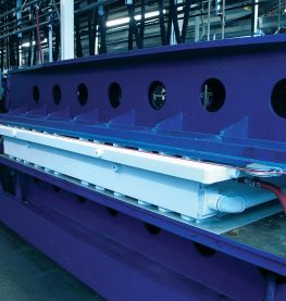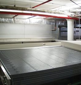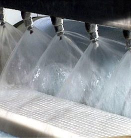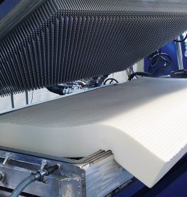 The latex mattress core is removed from the mold and placed on a conveyer belt that brings it through a five-stage fresh water washer, which removes latex proteins, residual soaps and curing agents. The multi-stage fresh water rinse is also unique to the Talalay process. |